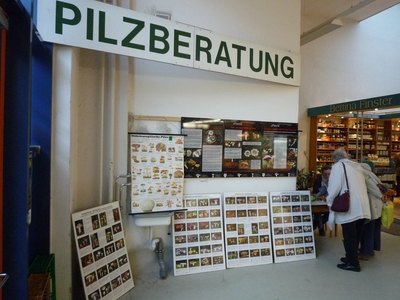 | Zuerst einmal selber nach der vermeintlich richtigen Art suchen | Die neuen Pilztafeln in der Beratungsstelle sind freundlicher |